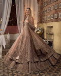 Peach pink bridal set exquisitely rendered and delicately handworked using dabka, resham, tilla and other traditional hand techniques.Handcrafted with meticulous care, our pieces have a lot of diligence and love invested in them. The exquisite craftsmanship requires laborious hours.