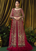 A modern take on traditional wedding wear. The three piece outfit is made out of net. The shirt is fully embellishment front and back skillfully placed over an underdress completing an A line silhouette. Further a net dupaata embellished with scallop borders and line patterns is added to complete the look.