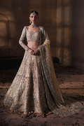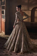 In the rhythm of bridal elegance, let the spotlight grace RAYA, a divine masterwork gilded in gold. This enchanting net creation unveils a poetic dance of details—a double-layered Tissue lehenga, where crush ruffles pirouette with whimsical grace. Embroidered with the delicate whispers of dori and mukesh, Raya emerges as the epitome of luxury, a refined verse woven with intricacy. Let your wedding day be adorned with the breathtaking details of this extraordinary ensemble.