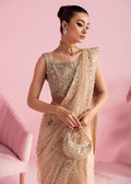 Steal the spotlight with this breathtaking nude net saree that exudes sheer elegance and sophistication. Every inch of this saree is adorned with an intricate and delicate pattern of shimmering pearls and sequins, creating a mesmerizing and eye-catching effect. The blouse that accompanies it is made of pure raw silk, intricately embellished with different techniques that perfectly complements the saree. The embroidery features a mix of traditional and contemporary patterns, creating a beautiful and organic flow.