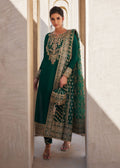 Indulge in the epitome of elegance with Zyra, an exquisite long Korean silk shirt in a rich, luxurious bottle green tone. This opulent piece is a celebration of timeless beauty, featuring intricate embroidered borders and a neckline that enhances its sophisticated design. The meticulous craftsmanship is showcased through fine embellishments that adorn the entire border of the shirt, creating a stunning visual effect. To elevate the ensemble even further, Zyra is paired with a fully embroidered organza dupatta, adding a touch of glamour and completing the look with grace and finesse.